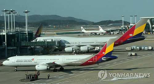 ▲금호산업은 금호아시아나그룹의 꼭지점에 있는 아시아나항공의 주식 30.08%를 가진 최대주주다. 금호산업이 다른 기업에 인수되면 아시아나항공 경영권도 넘어가게 된다. 금호아시아나 소속 항공기 모습. (사진=연합뉴스)