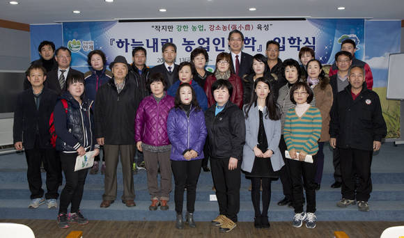 ▲▲ 인제군은 13일 인제 농업·농촌을 선도할 전문농업인 양성을 위한 2015년 '하늘내린 농업인대학' 입학식을 개최했다. (사진제공=인제군청)