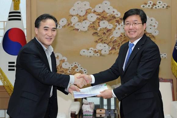 염태영 수원시장은 13일 오후 경기지방경찰청을 방문, 김종양 청장을 만나 수원지역 경찰서 증설 시 후보지 중의 하나인 지동지역 주민들의 경찰서 유치 건의서와 주민동의서를 전달했다.