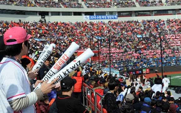 ▲kt위즈와 두산의 경기에 구름관중이 몰려 앞으로 인기몰이를 예고하고 있다.(사진=수원시 제공)