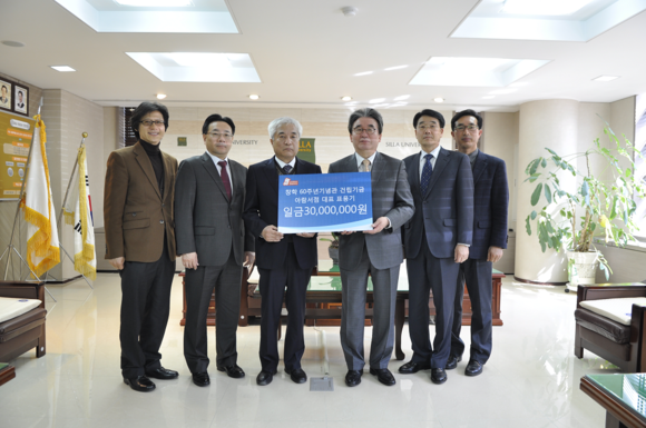 표용기 대표는 지난 17일 오후 2시 총장접견실에서 박태학 총장을 비롯한 주요 보직자들이 참석한 가운데 가진 발전기금 전달 행사에서 “신라대가 지난해 창학 60주년을 맞아 이를 기념하기 위해 올해 말 완공을 목표로 ‘창학60주년기념관’을 건립하는 일에 작은 정성이나마 보태고 싶다”며 기금을 전달했다.