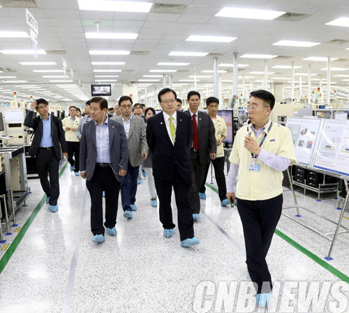 베트남을 공식방문 중인 정의화 국회의장은 19일(현지시간)오후 베트남의 박닝성 옌퐁현, 옌퐁 제1공단의 삼성전자 휴대폰 공장을 찾아 현장을 시찰하고 현지 근로자들을 격려했다.(사진=국회)