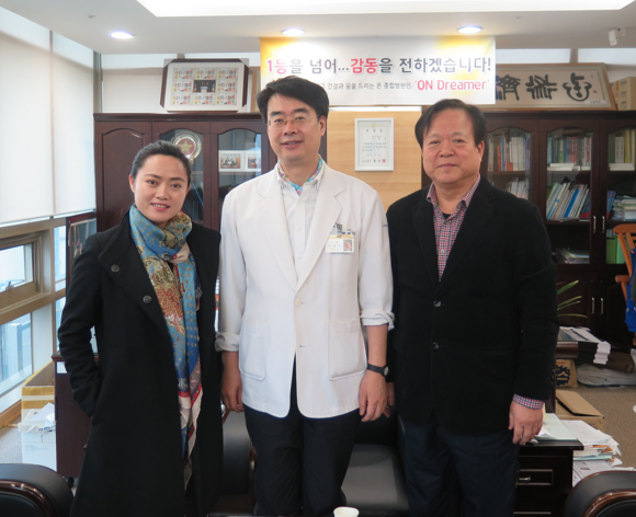 ▲왼쪽부터 중국인 도해연씨, 그린닥터스 정근 이사장, 부산국제선교회 김승희 선교사. (사진제공=온 종합병원)