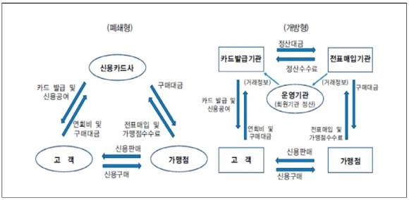 현재 우리나라 신용카드 결제시스템은 폐쇄형인 3당사자 체제(카드사, 소비자, 가맹점)다.