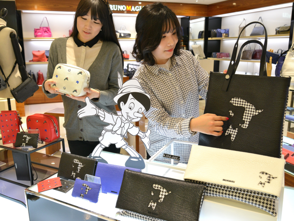 롯데백화점 부산본점 2층 브루노말리 핸드백 매장에서는 디즈니 애니메이션 동화 ‘피노키오’를 모티브로 핸드백과 지갑에 피노키오 캐릭터를 디자인한 ‘디즈니 에디션(DISNEY EDITION)’을 출시해 눈길을 끌고 있는 가운데, 오는 31일까지 이 제품 구매객을 대상으로 추첨을 통해 피노키오 가방, 미키 가습기 등을 증정한다. (사진제공=롯데백화점 부산본점)