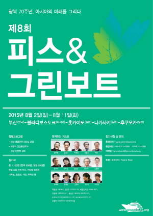 ‘2015 피스&그린보트’에서는 광복 70주년 한일공동심포지엄을 비롯해 작가 김연수, 김홍신, 성석제, 황석영, 황지우가 함께하는 ‘선상 인문학 강좌’을 통해 풍부한 관점으로 환경과 평화를 바라 볼 예정이다. 또 ‘선상 생명안전 리더십 과정’, 어린이 선상환경학교 등이 진행된다.