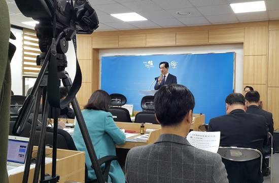 ▲지난 23일 기자간담회장에서 기자의 항소심 관련 질의에 답하고 있다. 안시장은 예측이나 발언 대신 조용하게 법리로 대앙할 것이며 공적인 책임감을 가지고 최선을 다할 것이라고 밝힌 바있다.