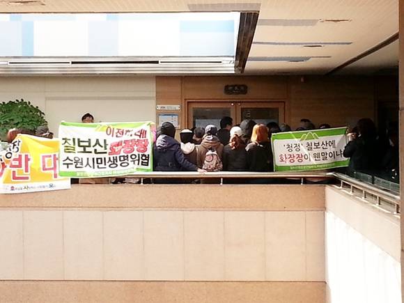 염태영 수원시장실이 26일 11시 현재 화성공동화장장 시위대에 인해 닫혀 있다.
