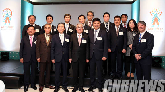 왼쪽 두 번째줄 (주)종근당홀딩스 최장원 상무, 엠엘씨월드카고(주) 채명기 대표, 현대약품(주) 김영학 대표이사, (주)신세계 박주형 부사장, (주)대구방송 임한순 이사, (주)효성 조현상 부사장, (주)희망이음 서경수 대표, (사)한국메세나협회 서현재 사무처장, (사)문화예술사회공헌네트워크 허인정 이사장(사진=문화체육관광부)