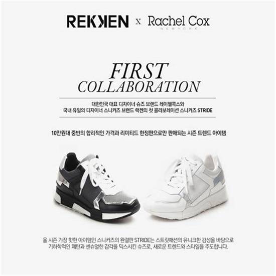 대한민국 대표 디자이너 슈즈 브랜드 레이첼콕스(Rachel Cox)와 국내 유일의 디자이너 스니커즈 브랜드 렉켄(REKKEN)의 첫 콜라보레이션 스니커즈가 공개됐다