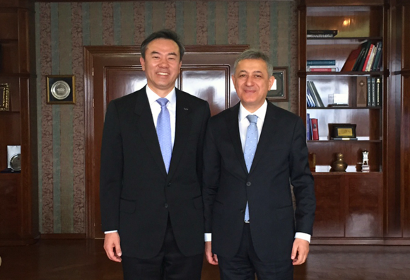 ▲왼쪽부터 예탁원 유재훈 사장, MKK 에르긴잔 사장.