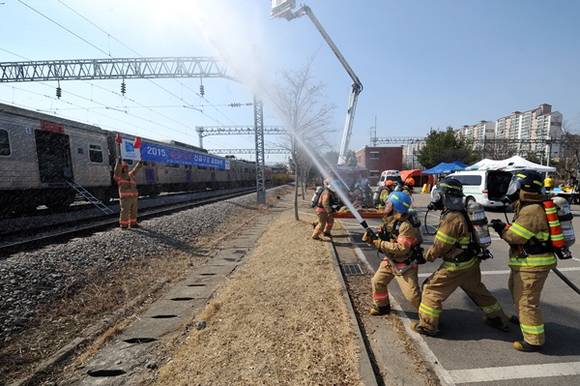 2015년 골든타임 긴급구조 종합훈련으로 명명된 이번 훈련에는 곽상욱 시장과 최영균 오산소방서장을 비롯해 오산·송탄·화성·용인소방서, 오산시청·보건소, 화성동부경찰서, KT, 한국전력, 육군2819부대, 한국철도공사 수도권서부본부 등 총 18개 기관·단체 관계자 300여명이 참석했고 헬기·응급차량·전동열차 등 총 60여대의 장비가 동원됐다.