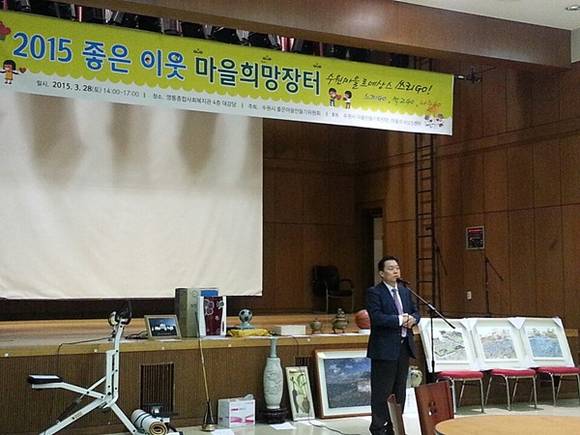 수원시가 마을르네상스사업의 기금조성 인큐베이팅을 위해 지난 28일 영통종합사회복지관에서 2015 좋은 이웃 마을희망장터 바자회를 열어 성황을 이뤘다.