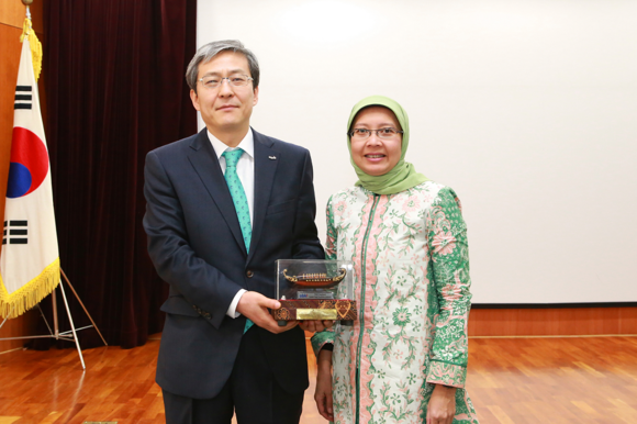 ▲왼쪽부터 예탁원 국제펀드본부 박영호 본부장, 인도네시아 펀드보관기관협회 디안 피트리파딜라 파크루딘(Dian Fithri Fadila Fachruddin) 회장. (사진제공=예탁원)