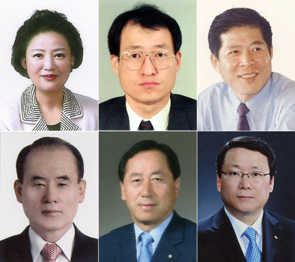 ▲부산상의 제22대 신임 부회장에 선임된 (왼쪽 위부터 시계방향으로) 한일냉장 오종수, 태광 윤성덕, 리노공업 이채윤, 대원플러스건설 최삼섭, 이진종합건설 전광수, 디알엑시온 이효건씨. (사진제공=부산상의)