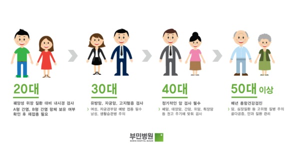 부산부민병원 건강검진센터 최재영 센터장은 “건강검진은 혹시라도 문제가 생길 수 있는 부분을 미리 발견해 예방하기 위한 선별검사이므로 무엇보다도 나이에 발병도가 높은 질환 위주로 검사를 받는 것이 중요하다”며 “건강검진을 현명하게 받기 위해서 자신의 나이, 가족력 그리고 현재 겪고 있는 특별한 증상을 알아야 한다”고 강조했다.
