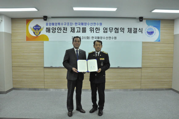 양 기관은 31일 해양수산연수원 대회의실에서 ‘해양안전 제고를 위한 업무협약 체결식’을 열고, 해양안전 제고와 수색 구조 전문인력 양성 등을 위해 긴밀히 협력해 나가기로 했다고 밝혔다.