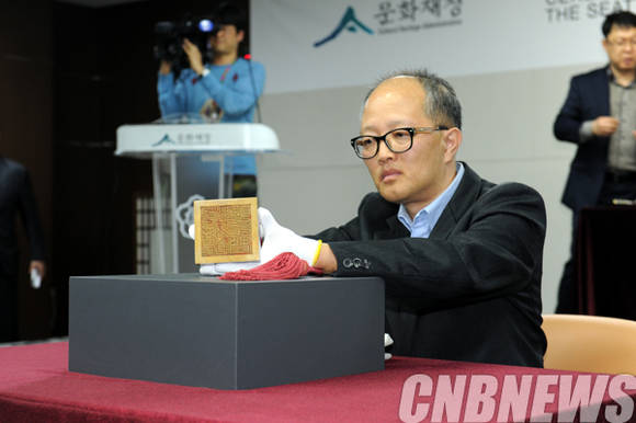 1일 오후 서울 국립고궁박물관 대강당에서 덕종어보 반환식이 열렸다. 이날 공개된 덕종어보를 문화재청 직원이 취재진들에게 공개를 하고 있다.