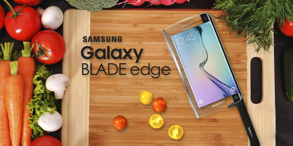 ‘궁극의 요리 동반자’로 ‘셰프의 마음을 담아 완성했다’고 소개된 이 제품은 ‘갤럭시 S6’와 투명 식칼이 결합된 특이한 외형을 가졌다.
