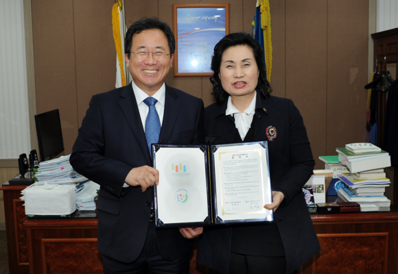 ▲왼쪽부터 김석준 부산시교육감, 김름이 부산여성가족개발원장. (사진제공=부산교육청)