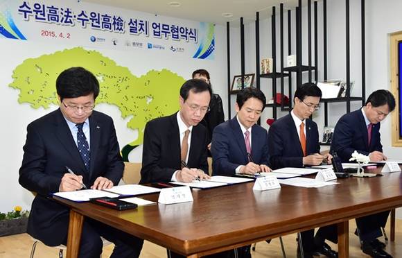 이날 열린 협약식에는 염태영 수원시장, 남경필 경기도지사, 방문규 기획재정부 제2차관, 김주현 법무부 차관, 강형주 법원행정처 차장이 참석해 협약서에 서명했다. 협약에 따라 각 기관은 청사 건축에 필요한 재정적, 행정적 지원에 뜻을 모았다.