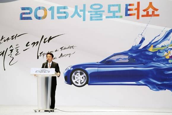 ▲서울 모터쇼 개막식이 3일 킨텍스 전시장에서 열려 남경필 경기도지사가 축사를 하고 있다.(사진=경기도 제공)