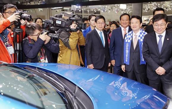 남경필 경기도지사가 3일 서울 모터쇼 개막식에 참석해 축사하고 차세대 차량을 시승하며 전시된 차량을 둘러 보았다.