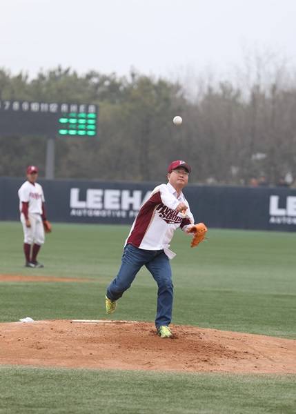 채인석 화성시장은 3일 오후 화성베이스볼파크에서 열린 프로야구 넥센 2군팀 화성 히어로즈의 2015시즌 퓨처스리그 홈 개막경기에서 시구했다.