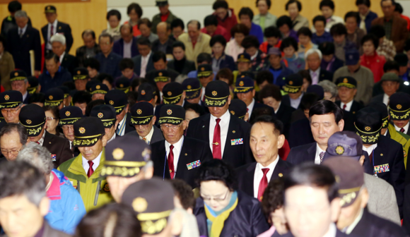 3일 오전 부산시청 1층 대강당에서 열린 자유민주수호 호국안보결의 및 북한이탈주민 격려행사에서 참석자들이 묵념을 하고 있다. (사진제공=부산보훈청)