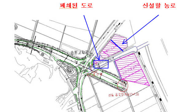 그러나 주민들은 통로박스로 연결된 농로를 이용하려면 농로까지 약 1.2km를 우회해 진출입 해야 하고 진입로 입구가 폭 3m로 협소해 대형 농기계 등 차량이 진입하기 어려워 영농에 막대한 지장을 초래하고 있다며 지난 2월 권익위에 민원을 제기했다.