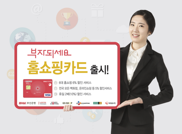 (CNB=최원석 기자) BNK금융그룹(회장 성세환) 부산은행은 6대 홈쇼핑 이용 시 6%가 할인되는 ‘부자되세요, 홈쇼핑카드’를 출시했다고 7일 밝혔다.