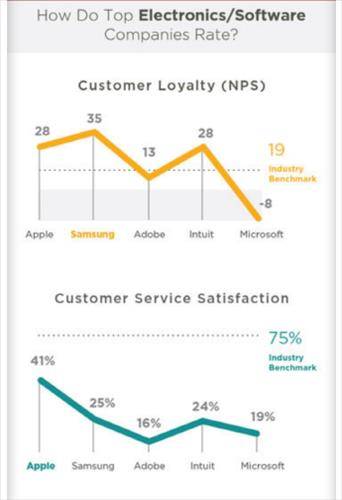 조사업체가 설정한 업계 브랜드 충성도 기준 점수는 19점이었으며, 애플은 28점으로 미국 재무관리 소프트웨어업체인 인튜이트(Intuit)와 공동 2위를 차지했다.
