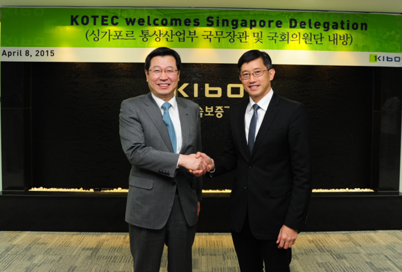 ▲왼쪽부터 기보 김한철 이사장, 싱가포르 통상산업부 테오써럭 국무장관. (사진제공=기보)