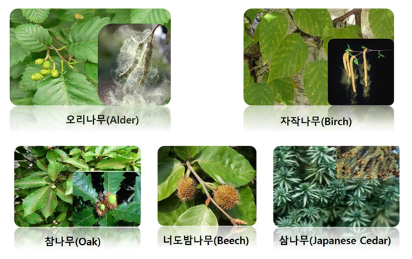 약 30~35%의 꽃가루 알레르기 환자들이 최소한 한 가지 이상의 식품에 교차반응을 보일 수 있다. 이 중에서도 자작나무 꽃가루(Birch pollen)가 가장 대표적인 물질이다. 꽃가루 관련 알레르기를 일으킬 수 있는 예로는 배, 사과, 멜론, 키위 등의 과일, 땅콩, 헤이즐넛 등의 견과류 그리고, 옥수수, 상추 등의 채소와 같은 식품 등이 되며 이중 한 가지 이상에서 알레르기 반응을 보일 수 있다.