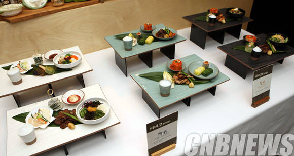 ▲지난달 26일 서울 중구 동호로 CJ푸드빌(주) 본사에서 진행된 2015 밀라노엑스포 한국관 한식메뉴 시식회에 선보인 '온유'와 '흑율'.(사진=문화체육관광부)