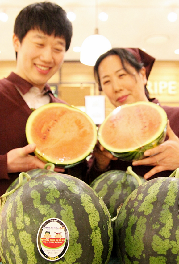 신세계 센텀시티 지하1층 푸드마켓에서는 국내 최대 수박 산지로 유명한 경남 함안군에서 재배된 ‘함안 수박’을 선보이고 있다. (사진제공=신세계 센텀시티)