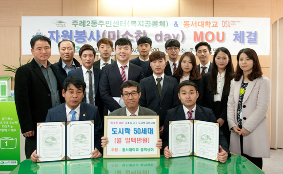 이번 협약으로 동서대 총학생회는 매주 금요일에 도시락 50개를 만들어 주례2동 독거노인들에게 배달한다.
