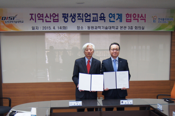 (CNB=한호수 기자) 한국폴리텍대학 동부산캠퍼스(학장 한상규)는 14일 동원과학기술대학교(총장 장호익)와 지역사회에 필요한 전문 인력 양성을 위한 교육연계 협약을 체결했다고 밝혔다.