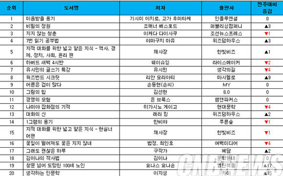 또한 5000년 역사를 만든 동서양 천재들의 사색공부법을 소개한 ‘생각하는 인문학(차이)’은 15단계나 상승, 20위에 랭킹되며 베스트셀러 반열에 올랐다.
