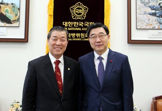 ▲황진하 국회의원이 폴리텍대학 파주시 유치를 위해 이기권 고용노동부 장관과 면담하고 기념촬영했다. 파주시는 지난 15일 한국폴리텍대학을 유치 부지로 최종 선정됐다.