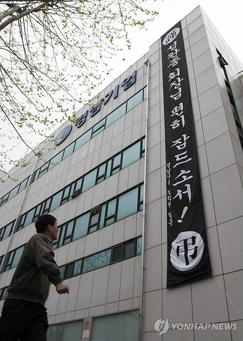 ▲고 성완종 전 회장 추모 현수막 걸린 경남기업. (사진=연합뉴스)