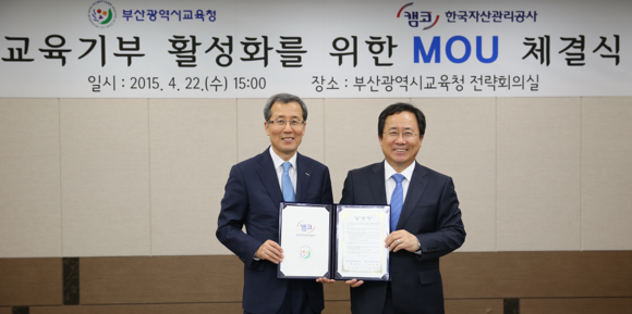 (CNB=최원석 기자) 한국자산관리공사(캠코, 사장 홍영만)와 부산시교육청(교육감 김석준)이 22일 오후 3시 시교육청 회의실에서 저소득계층 청소년 교육격차 해소를 위한 교육기부 업무협약을 체결했다.