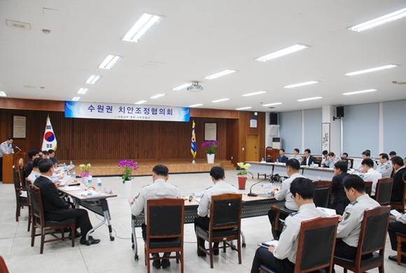 치안조정협의회는 자치단체와 치안정책에 관해 논의하기 위해 구성된 협의체로 수원지역 3개 경찰서 중 경무관 경찰서장인 유진형 서장이 회장을 맡고 있으며 고기철·안기남 서장이 부회장을 맡고 있다. 위원은 3개 서 각 과장으로 이루어져있다.