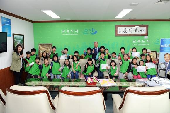 곽상욱 오산시장은 지난 23일 오전 집무실에서 시청 탐방학교에 참가한 문시초등학교 4학년 2반 학생들과 만남의 시간을 가졌다.