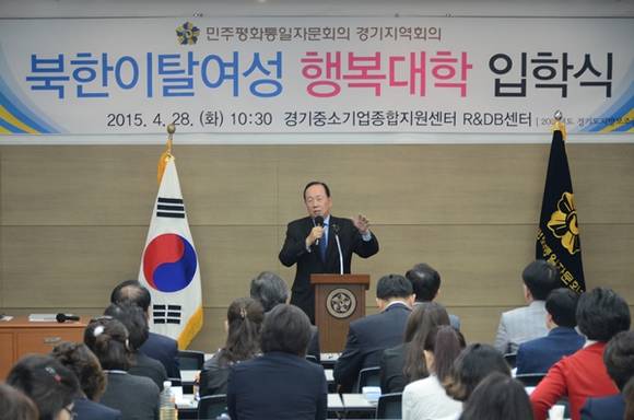 민주평통경기지역회의(부의장 박해진) 경기도 여성분과위원회(여성위원장 안인옥)에서는 28일 경기중소기업종합지원센터 R&DB센터에서 북한이탈여성을 위한 행복대학 입학식을 개최하였다.