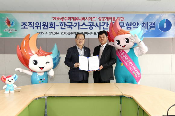 2015광주하계유니버시아드 조직위원회(공동위원장 윤장현⋅김황식)가 한국가스공사와 업무협약을 맺고, 상호 포괄적 협력체계 구축을 통해 광주U대회 성공 개최에 힘을 모으기로 했다.