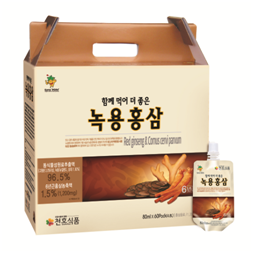 천호식품 ‘녹용홍삼’은 녹용 중의 녹용이라 불리는 녹용 상대와 6년근 홍삼이 함께 들어간 제품이다.