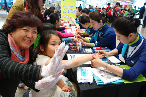 이날 행사에는 캐빈승무원들로 구성된 악기연주단 ‘블루하모니’에서 합주로 어린이날 분위기를 돋우고 기내 피부관리 특화서비스팀 ‘블루뷰티’에서 어린이 대상으로 페이스페인팅·보호자 및 다른 손님 대상으로 핸드 마사지를 실시했다.