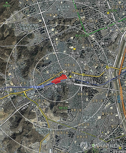 ▲수도권에서 행복주택사업이 시행되면서 신도시개발이 찬밥 신세가 됐다. 행복주택 시범지구 중 하나인 서울 오류동 행복주택지구 위치도. (국토교통부 제공)