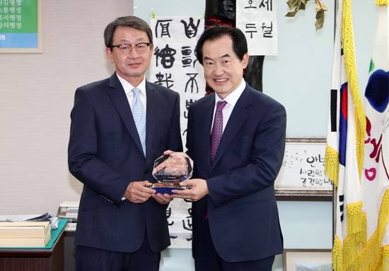 안병용 의정부시장은 4일 가톨릭대학교 의정부성모병원 전해명 원장에게 감사패를 수여하고, 의정부시 국제의료협력 활성화 방안을 논의했다.